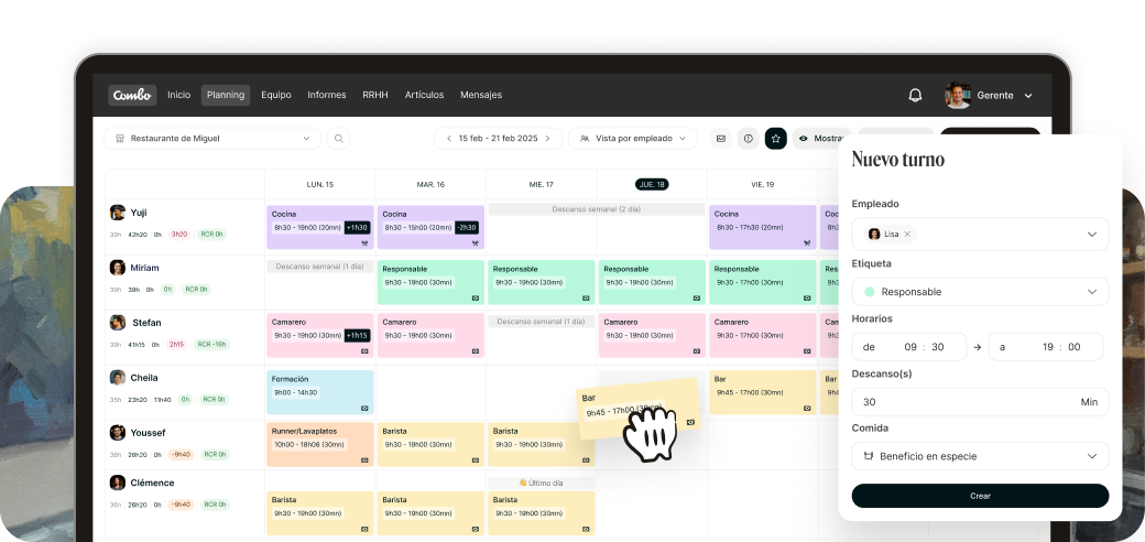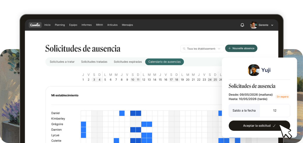 Otra de las cosas que más usamos es la petición de vacaciones. Para los empleados, ver los planning es muy fácil, porque usar la aplicación directamente en el móvil es muy sencillo. Antes tenía que ir detrás de ellos pidiéndoles los días de vacaciones, pero ahora lo hacen desde Combo y es mucho más sencillo.