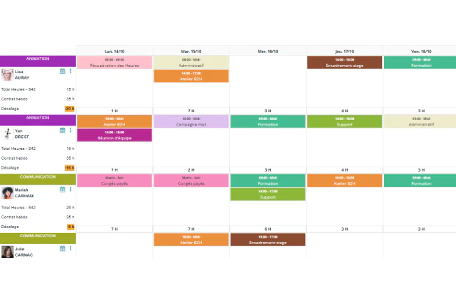 Une gestion idéale des emplois du temps complexes avec de fortes contraintes. Vous créez vos plannings par service, pouvez les croiser, les attribuer en multi-sites ou par salarié. Le tout en tenant compte des jours d’absence, de récupération, de RTT et de roulement. Son autre + est la possibilité de réaliser une exportation des données vers vos logiciels et outils de paie. Que vos équipes travaillent en 3x8 ou en plusieurs petites équipes réparties sur votre site, Staff Planning vous fait gagner un temps précieux, si vous êtes manager d’équipe ou responsable RH.