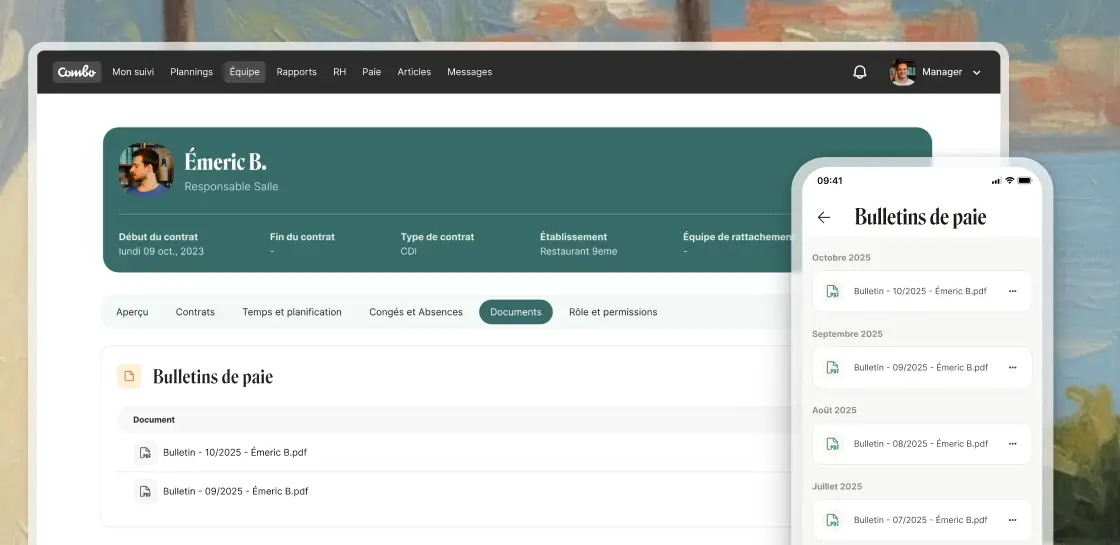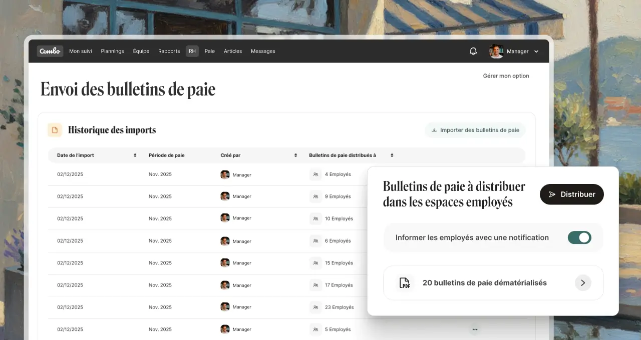 "Avant Combo, la distribution des fiches de paie n’était pas du tout fluide, nos collaborateurs ne savaient pas toujours où trouver leurs documents... Nous avions des questions chaque jour et tout ça nous faisait perdre un temps fou. Grâce à cette fonctionnalité, tout est plus rapide et pratique. C’est rassurant pour tout le monde et on s’est mis en conformité.”