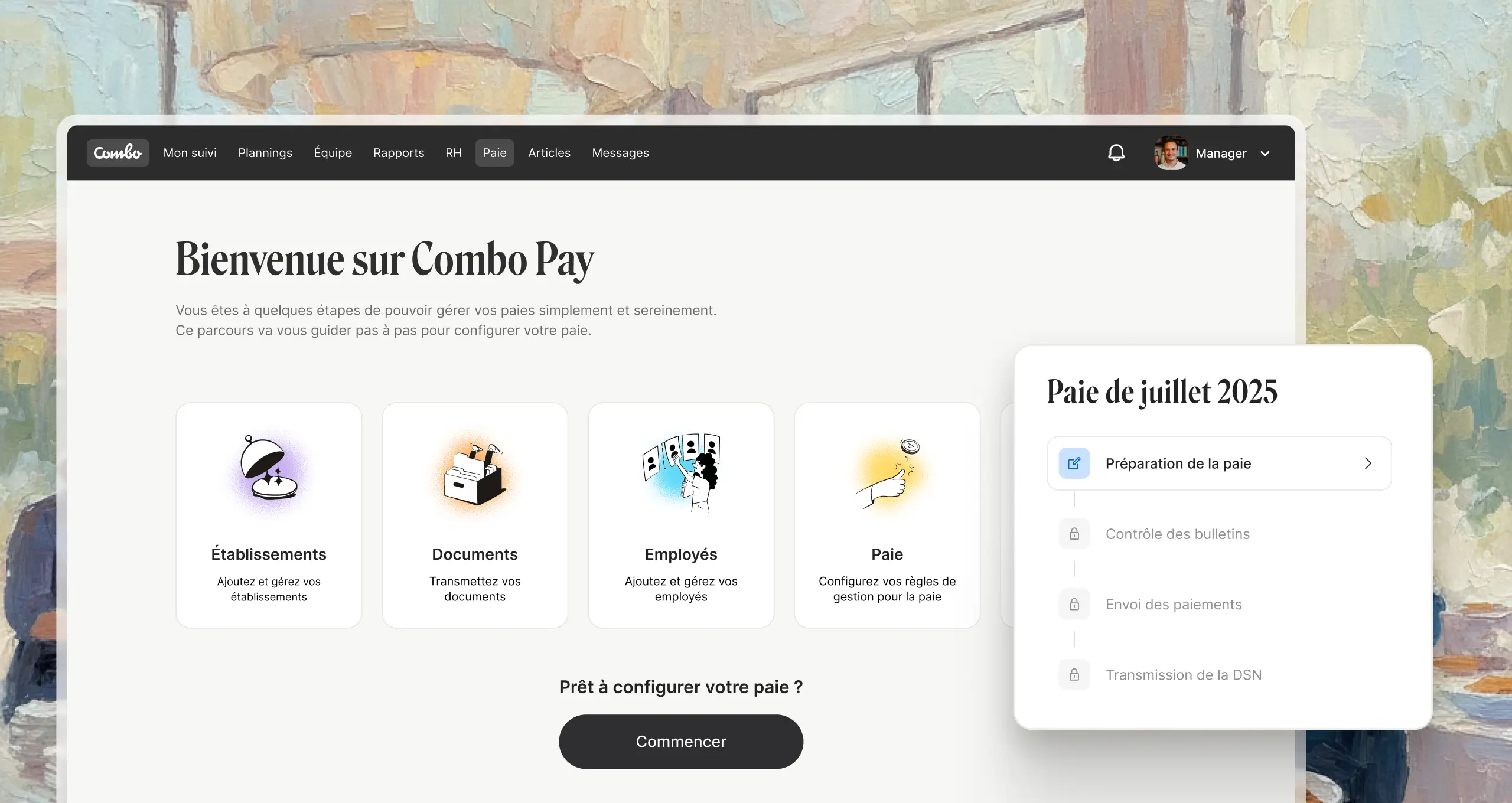 - Le parcours de paie est complet, sans accroc, sur Combo