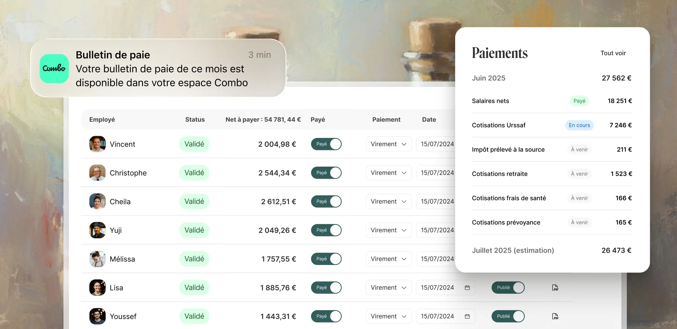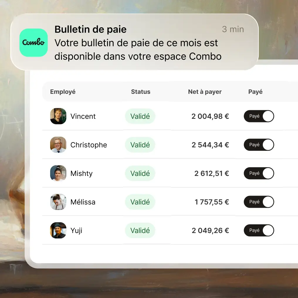 Pour une paie 100% confiance, 0% charge mentale, et accessible depuis Combo, profitez de l'accompagnement et de l'expertise de nos gestionnaires de paie.