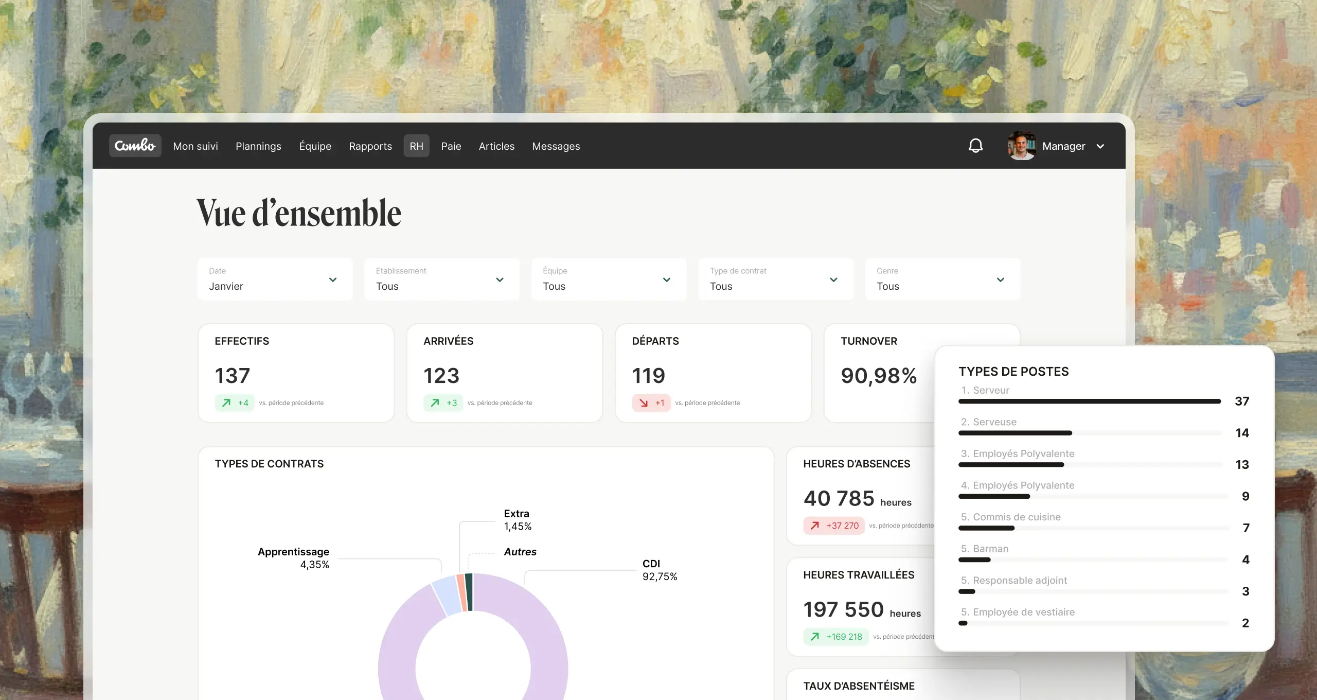 - Turnover, absentéisme, heures travaillées... rien ne vous échappe