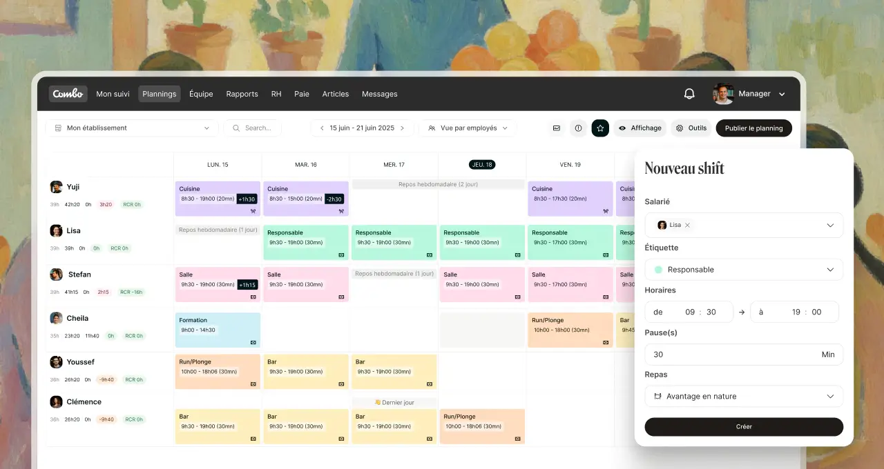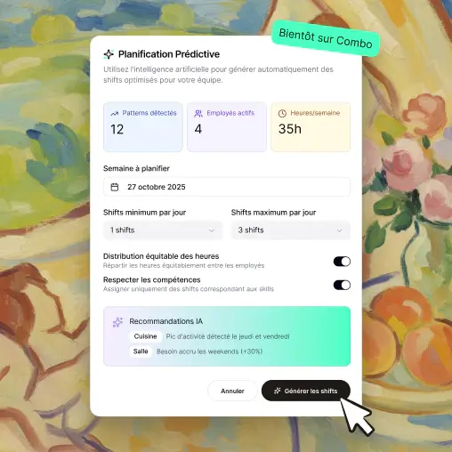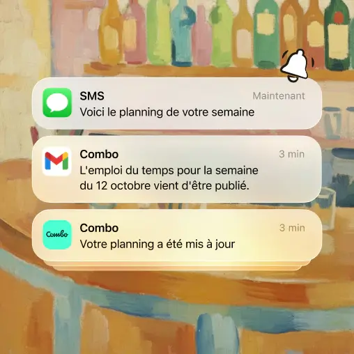 - Vos équipes reçoivent leurs horaires directement sur leur smartphone via leur appli Combo